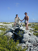 Our friends, Mike and Mona climb a rock wind break.