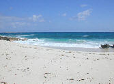 small beach on the East Shore with Cotton Cay in the horizon.