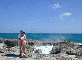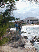 friends at North Point on a windy day.