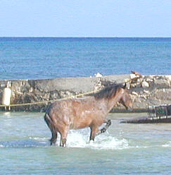 | February was a good month for a bath... Silver and Buckwheat came down to the Harbor for their monthly dip. Click on the photo to view a slide show of the horses. |